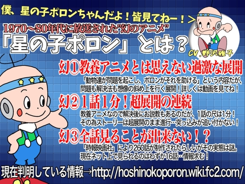 ポロン発掘のために俺が何をしたか…その8~その10の所有者の方に連絡したり…時報映画社(仮)に出向いたり手紙出したり…課金してまでポロンを宣伝したり…どれもあんま関係ないルートじゃねーか!